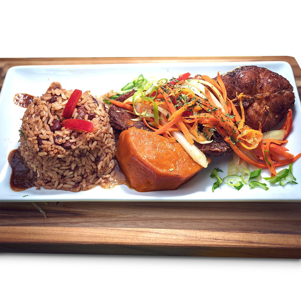I had the jerk catfish cabbage rice and peas and I can't forget the beautiful escovitch peppers and onions when I tell this food was so delicious and the portions so huge I enjoyed it so very much. BTW plantains can't be better...thank you for all the care you take in cooking beautiful Jamaican cuisine..